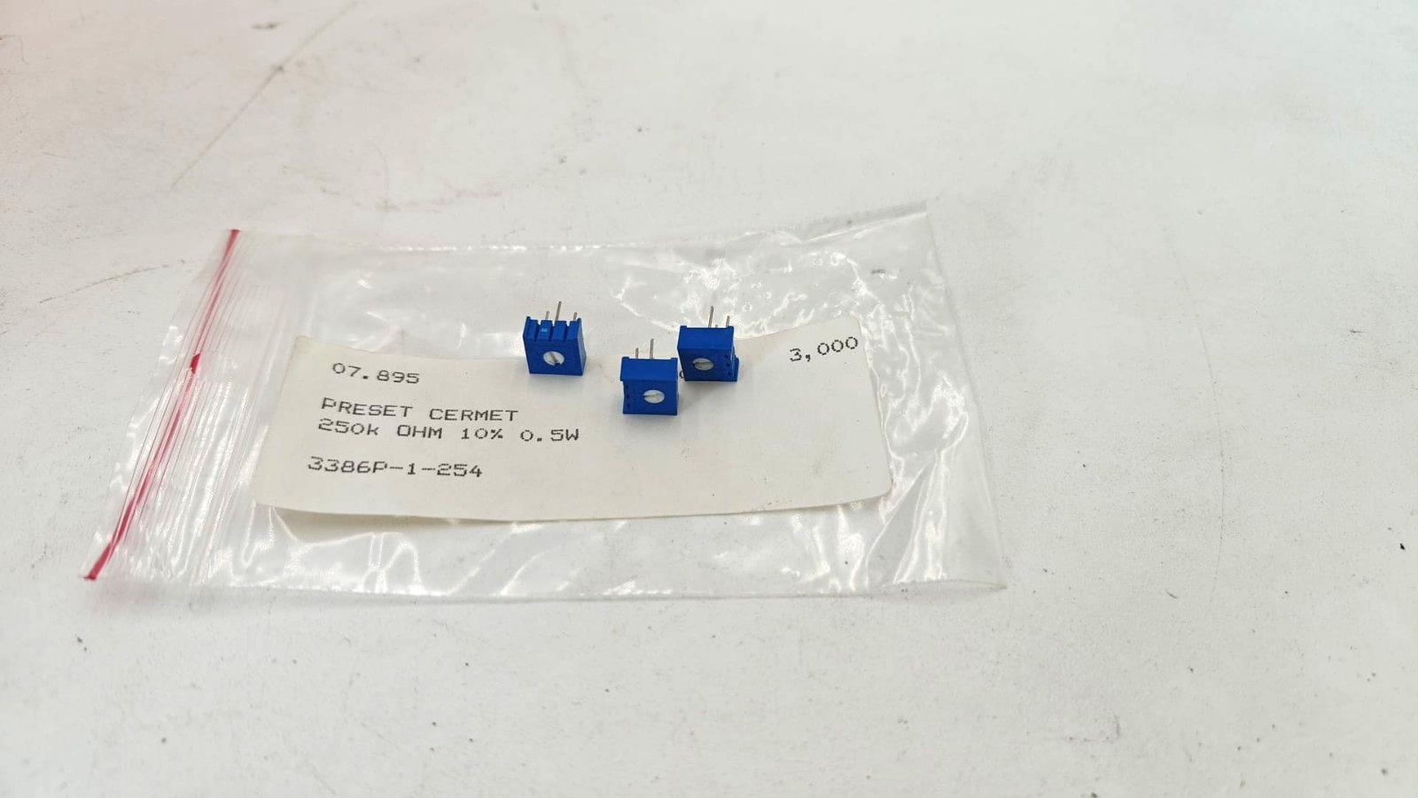 3x Preset Cermet 250k 0HM 10% 0.5W 3386P-1-254
