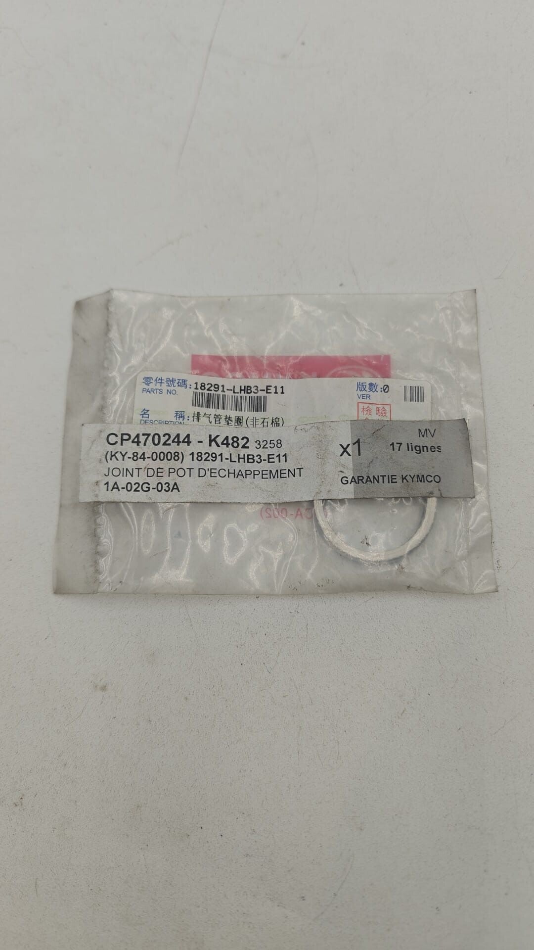 Joint de pot échappement pour scooter Kymco 50 Agility 2T 18291-LHB3-E11 29x35x5