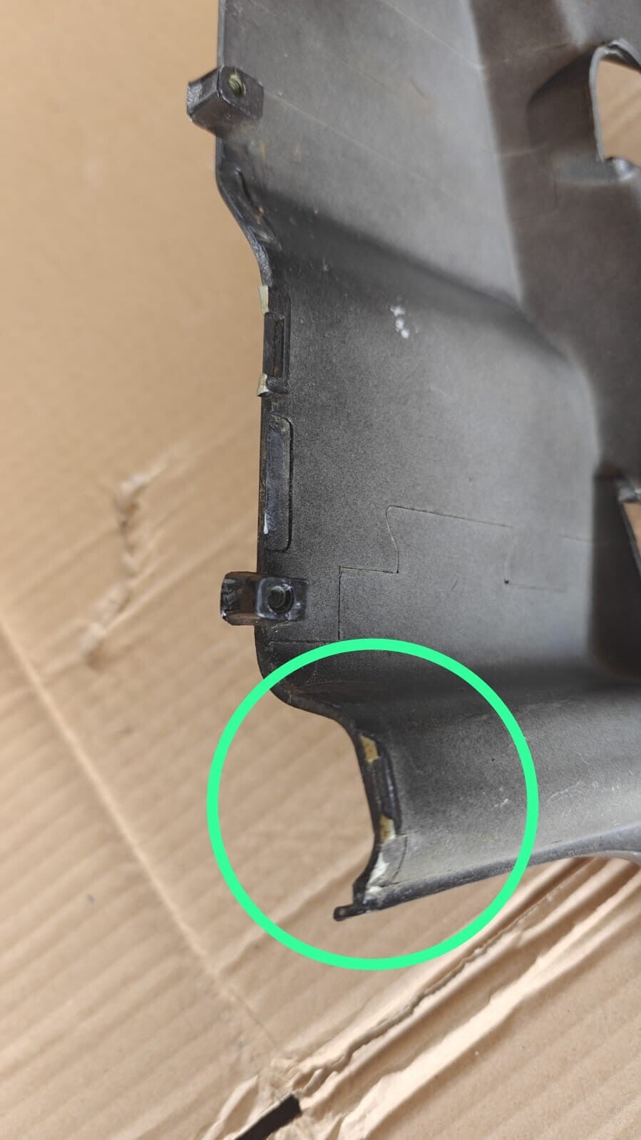 Voir pattes cassée et griffures entouré en vert
